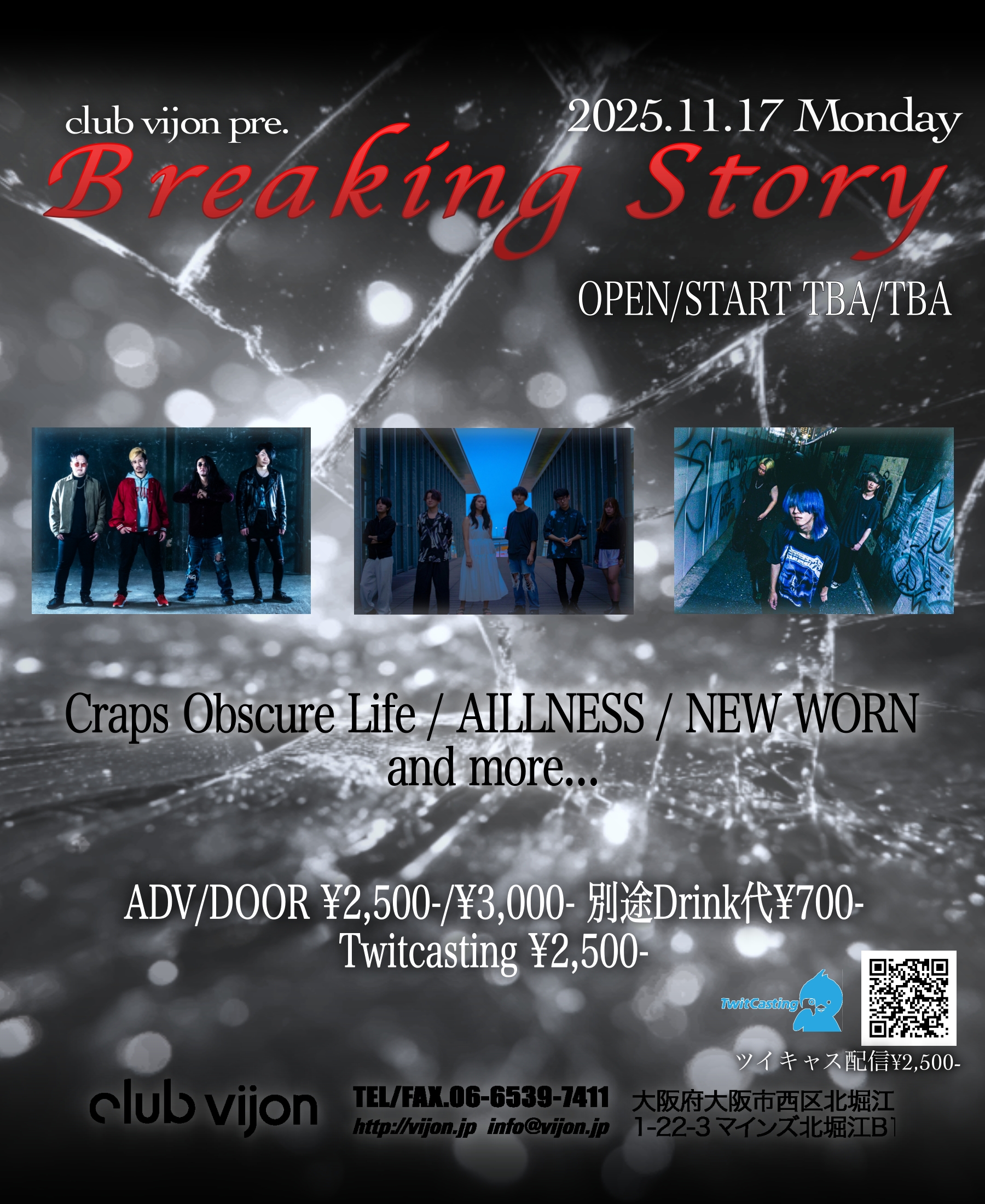 - ADV/DOOR ¥2,500-/¥3,000- 別途Drink代¥700- 配信チケット ¥2,500-