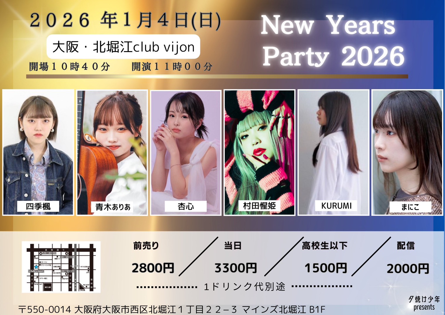 前売2800円 当日3300円 ※1ドリンク別途