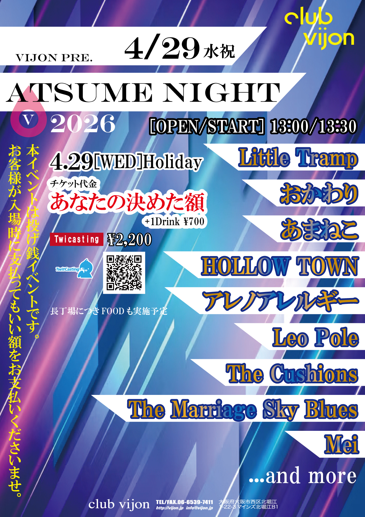 会場販売:無 (問)北堀江club vijon 06-6539-7411 info@vijon.jp