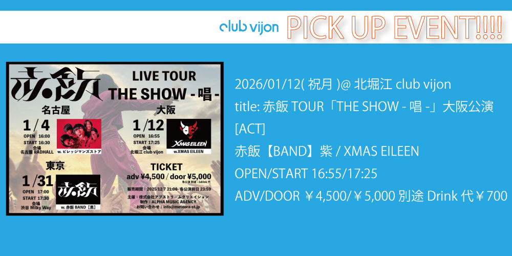赤飯TOUR「THE SHOW -唱-」大阪公演