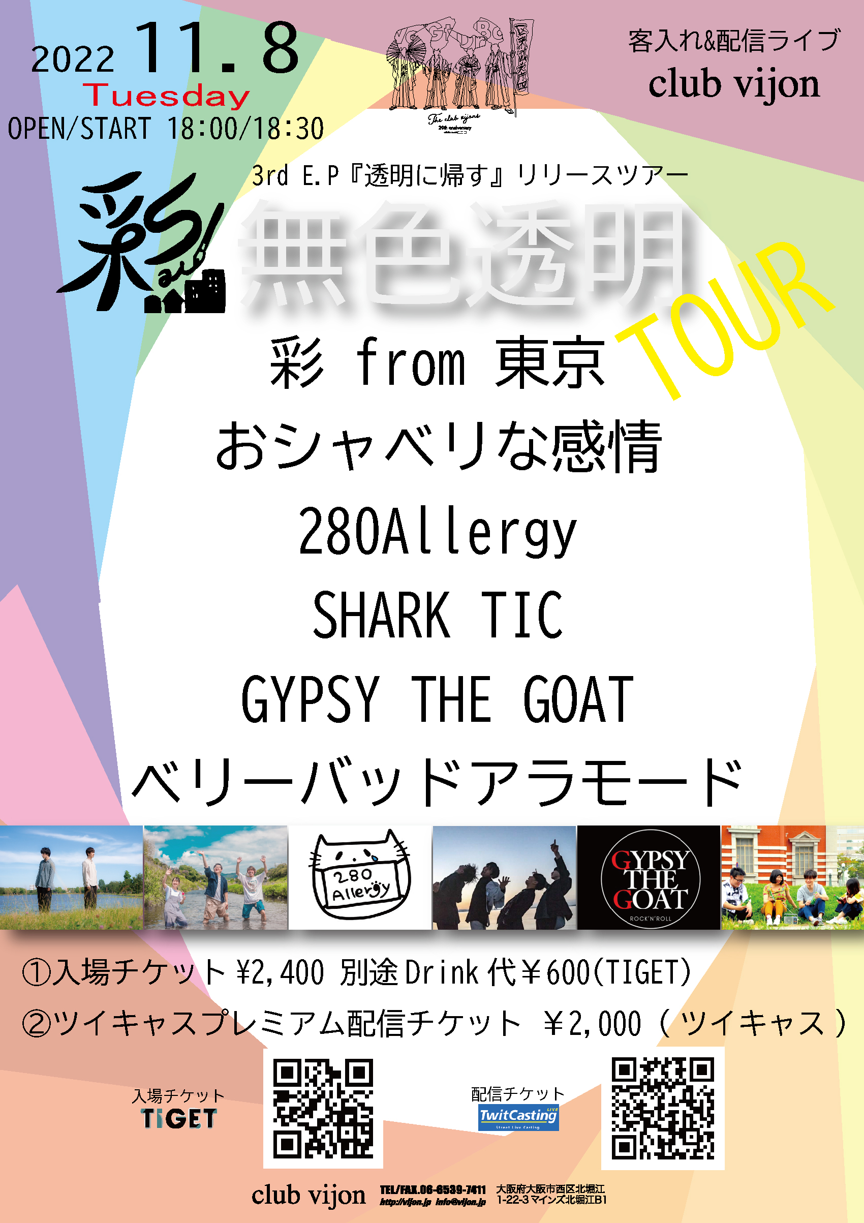 彩 3rd E.P『透明に帰す』リリースツアー"無色透明"ツアー 〜大阪club vijon編〜