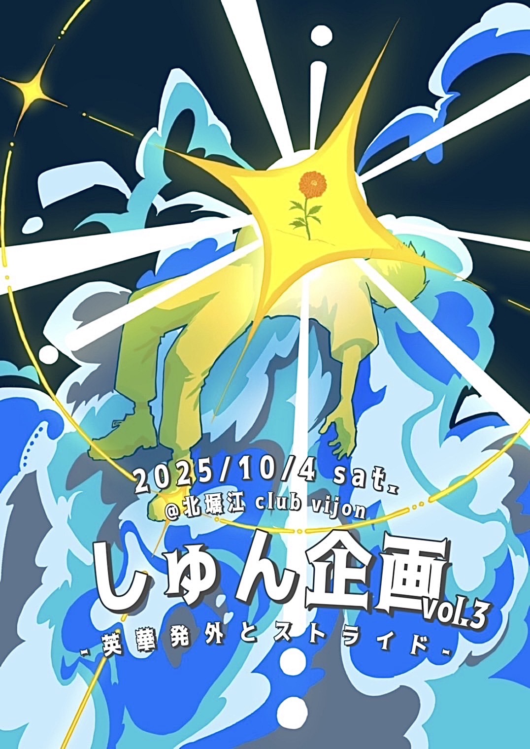 北堀江 club vijon(クラブビジョン) スケジュール 2025.10.04(Sat) しゅん企画 vol.3 - 英華発外とストライド - [ACT] 夜しか予定合わん / ユニゾンのコピーバンド / ごくふつうの軽音部 / Tipsy Gnu / 北堀江事変 / よにんの世界 / たにたつ / FuwAmore / しぇぼん / PLAYER5 / 固濃オーメーズ / Mr.GREEN APPLEs [OPEN/START] 11:30/12:00 [料金] 無料(別途1drink代¥700必要) 会場販売: (問)北堀江club vijon 06-6539-7411 info@vijon.jp 〒550-0014 大阪府大阪市西区北堀江1-22 マインズ北堀江B1