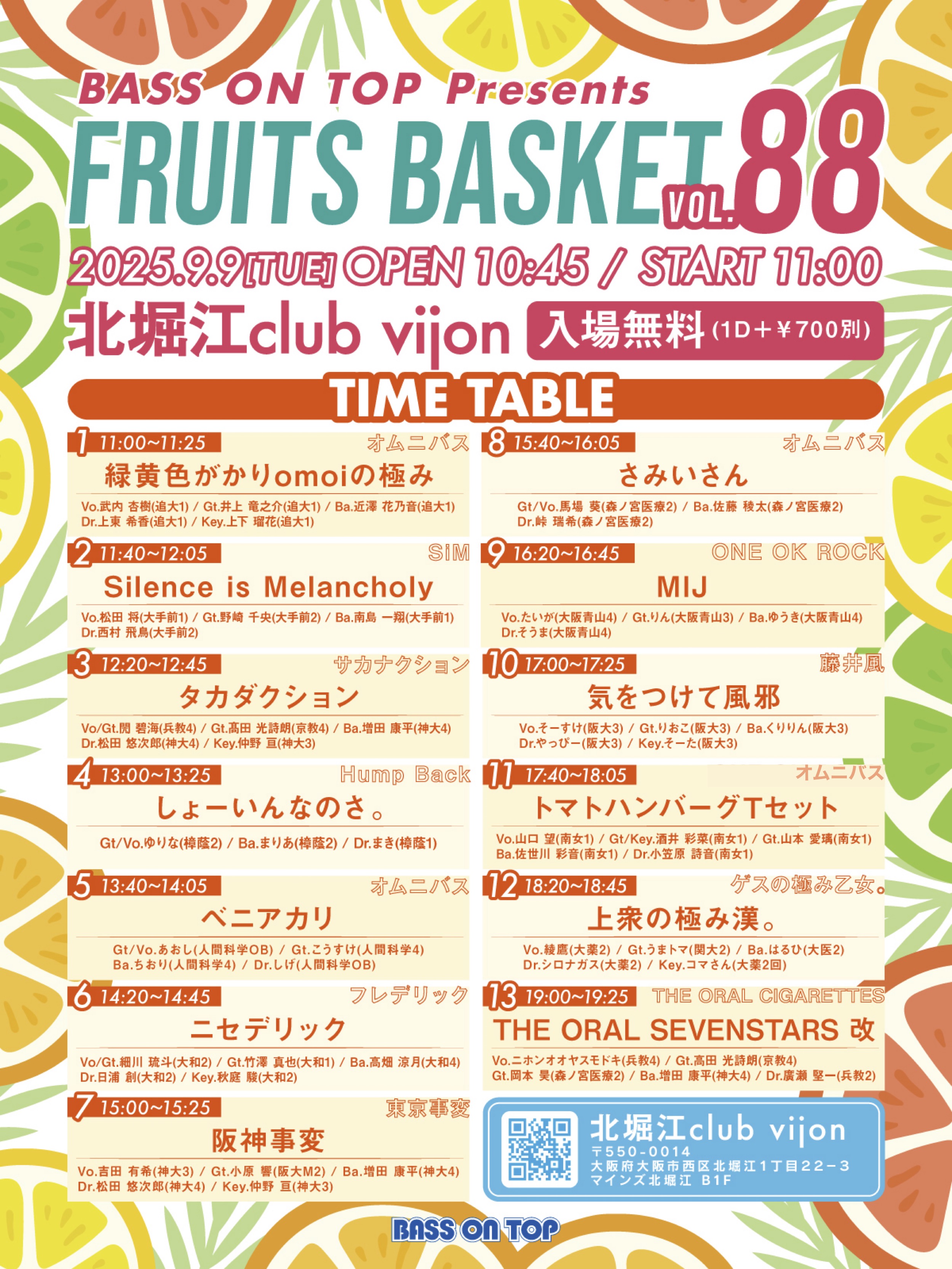 - 緑黄色がかりomoiの極み / Silence is Melancholy / タカダクション / しょーいんなのさ。/ ベニアカリ / ニセデリック / 阪神事変 / さみいさん / MIJ / 気をつけて風邪 / トマトハンバーグTセット / 上衆の極み漢。/ THE ORAL SEVENSTARS 改
