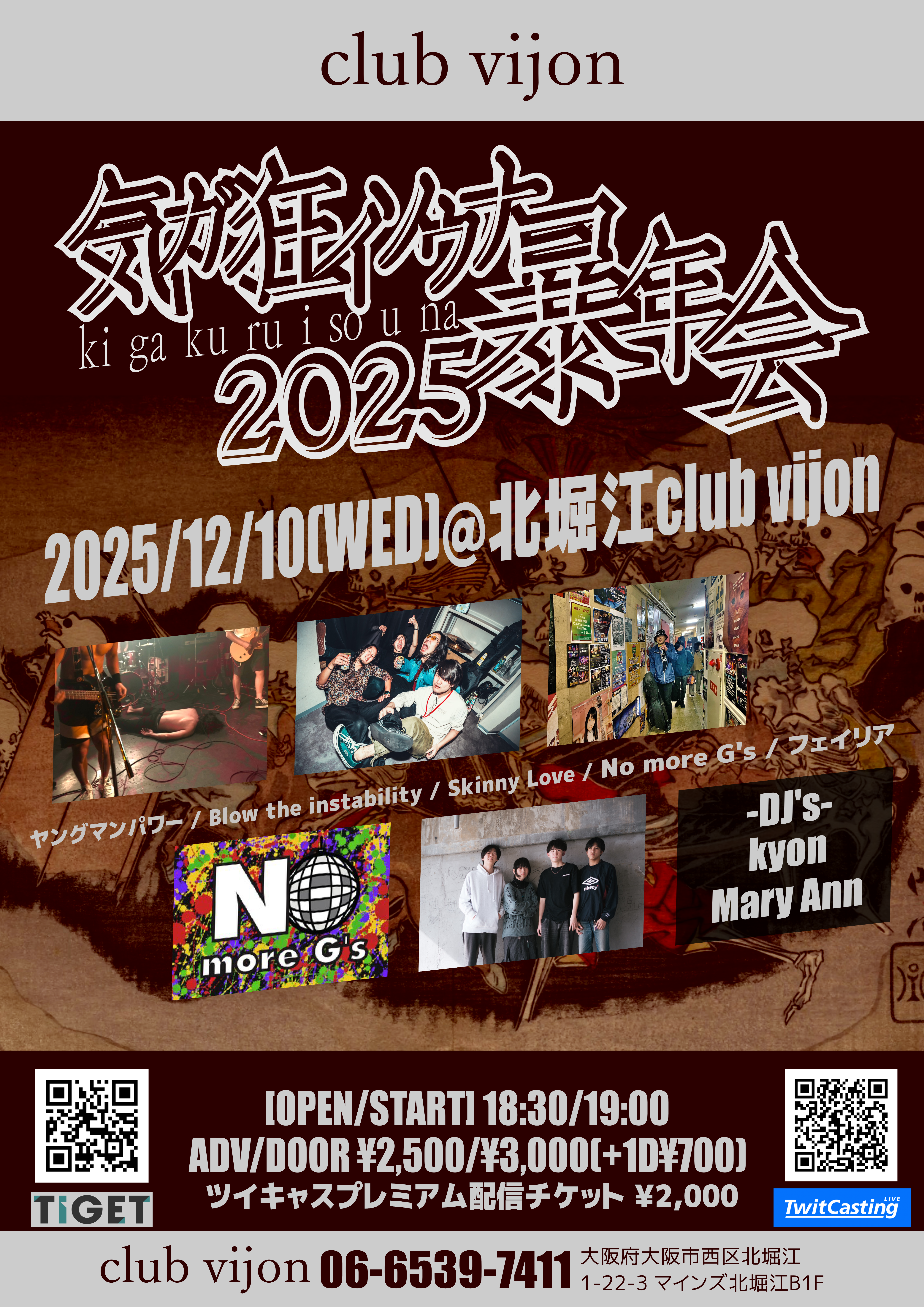 - ADV.¥2,500 / DOOR,¥3,000 別途Drink代¥700