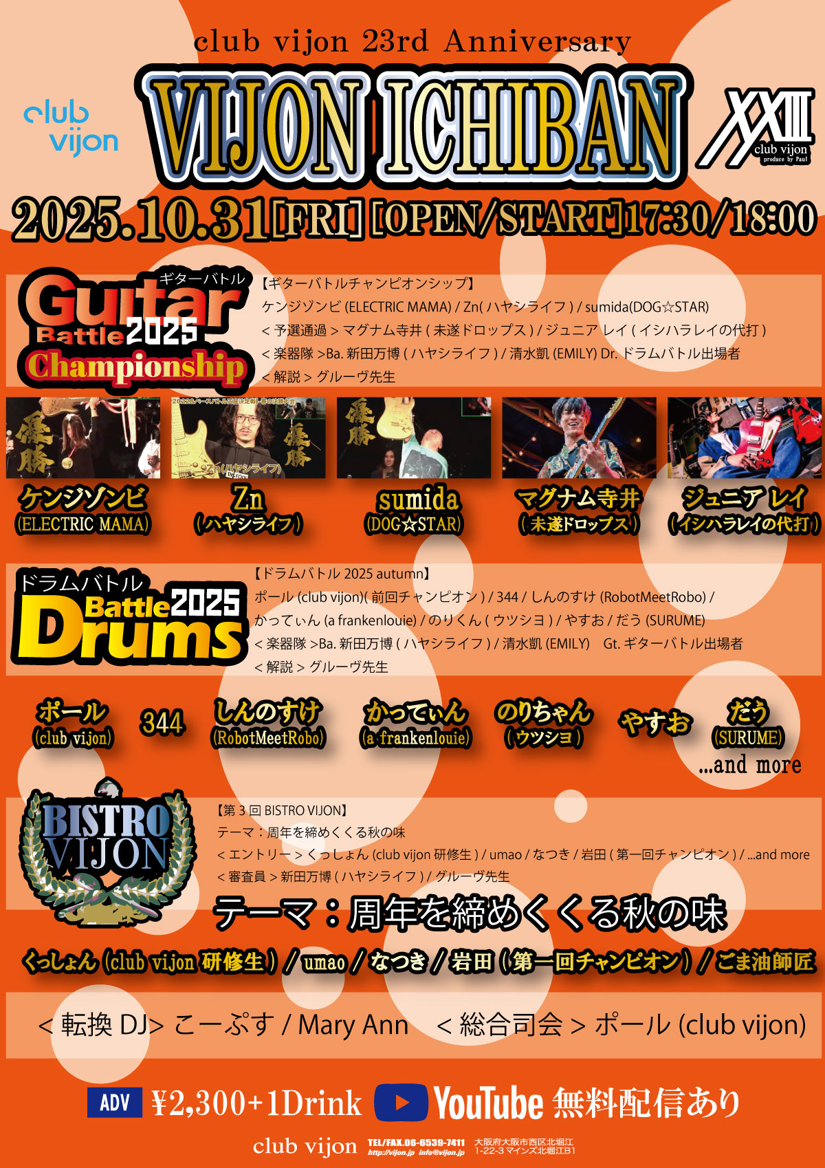 club vijon 23rd Anniversary【VIJON ICHIBAN】 ギターバトルチャンピオンシップ × ドラムバトル2025 autumn × 第3回 BISTRO VIJON
