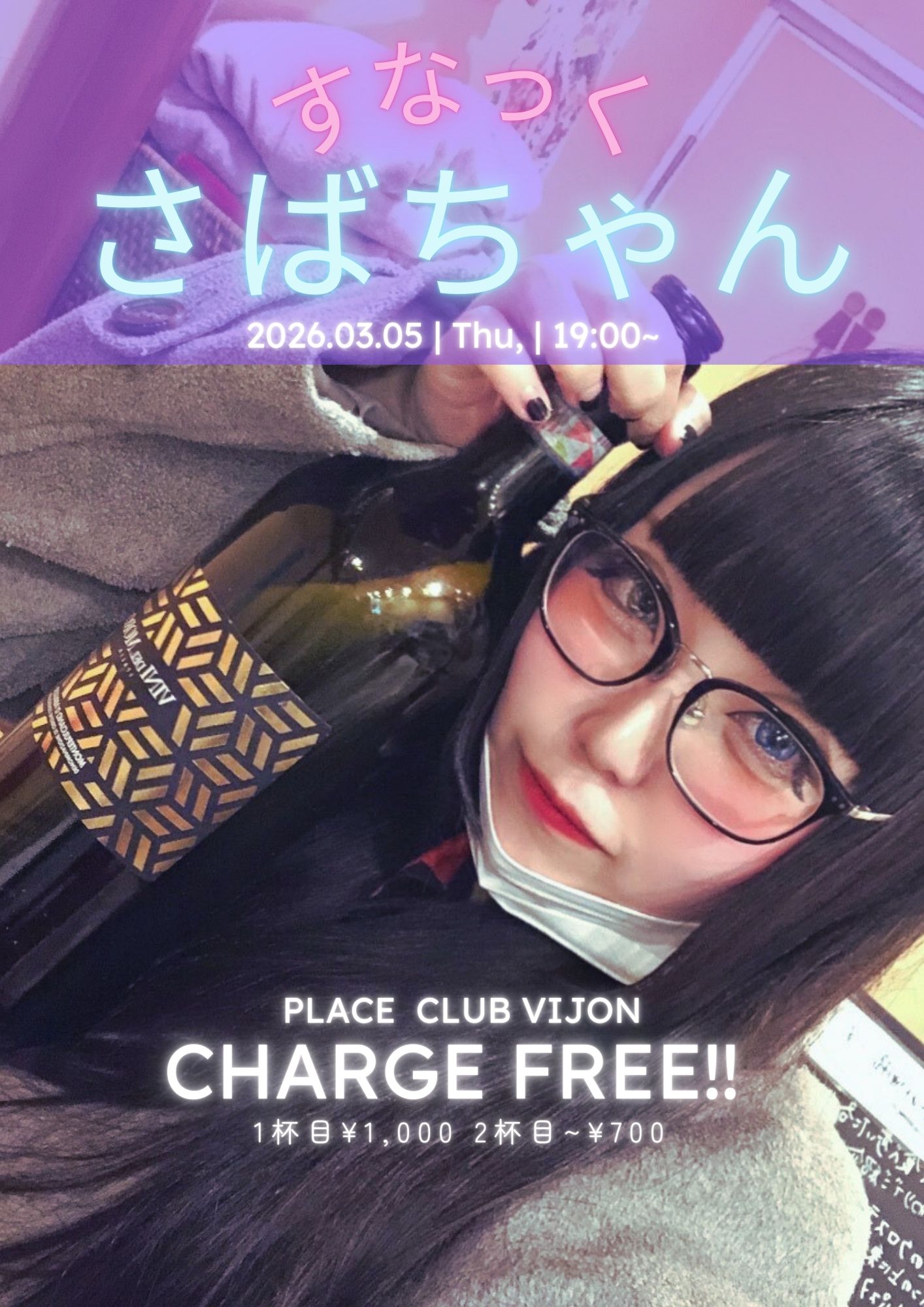 北堀江 club vijon(クラブビジョン) スケジュール 2026.3.05(Thu) すなっく さばちゃん vol.2 [OPEN/START] 19:00 OPEN [料金] FIRST DRINK ¥1,000 ライブ見たい人は別途チケット代頂戴します。 (問)北堀江club vijon 06-6539-7411 info@vijon.jp 〒550-0014 大阪府大阪市西区北堀江1-22 マインズ北堀江B1