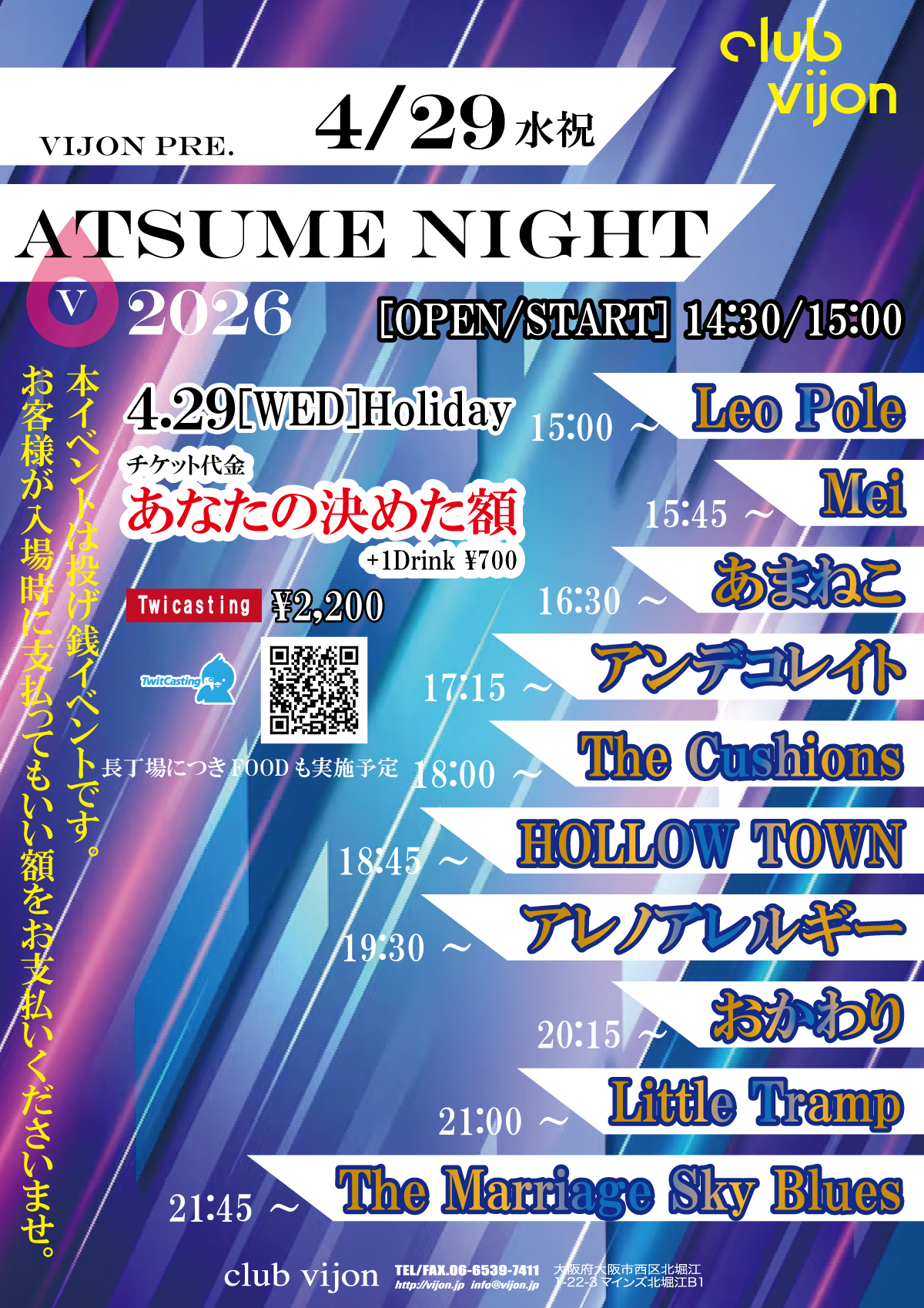 会場販売:無 (問)北堀江club vijon 06-6539-7411 info@vijon.jp
